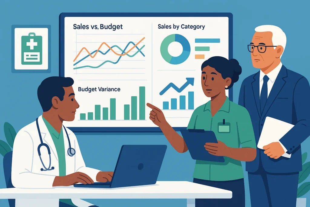 Healthcare finance teams struggled to compare actual sales with target budgets, especially with complex datasets. They needed a solution to track sales performance, forecast future trends, and provide interactive, real-time reports tailored for all organizational levels, ensuring accurate financial reporting.